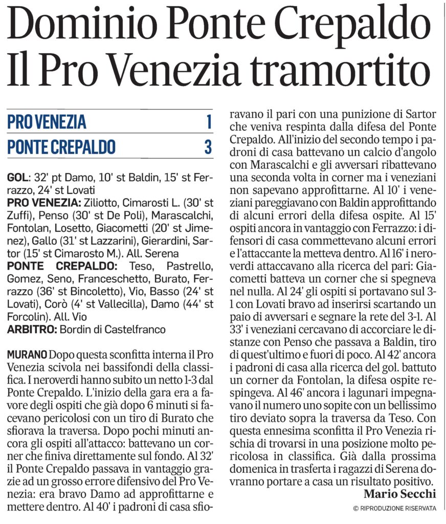 ⚽⚽⚽ Il 2026 purtroppo inizia non bene per la Prima Squadra che esce sconfitta in casa nella partita contro Ponte Crepaldo S. G. Bosco.
